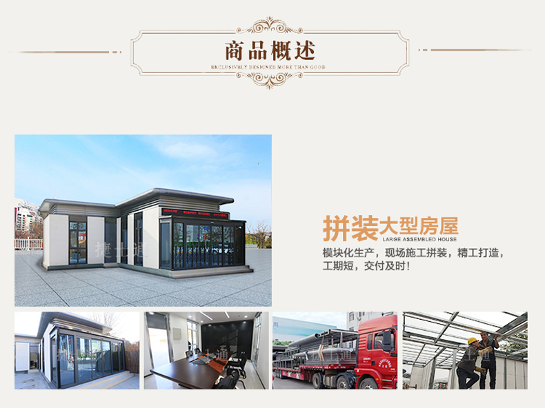 產(chǎn)品類(lèi)型 大型辦公室、公共設(shè)施房屋、售貨屋、交通檢查、戶(hù)外廁所等。