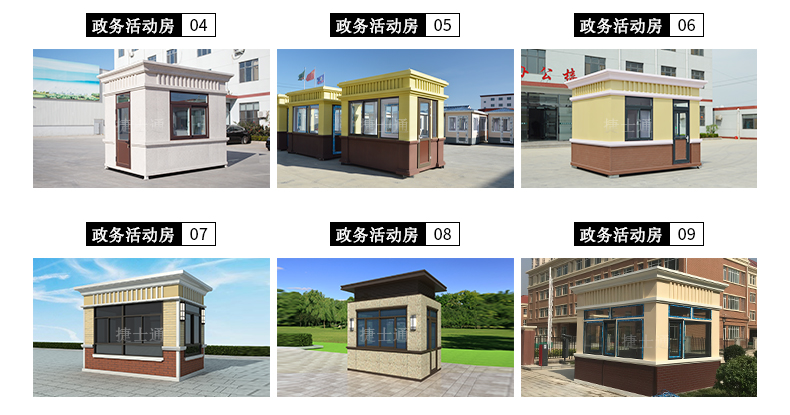 華夏款高端成品崗?fù)?/a>采用多種高端防褪色、防火、耐污性好、抗水性好、水性環(huán)保、使用壽命長、外墻硬度高的現(xiàn)代化高端外墻板(可選),室內(nèi)裝修完善,可鋪復(fù)合木地板、防滑鋁板(可選),墻體有保溫隔熱層、屋頂采用高端多層保溫防水屋頂,配電完善(照明燈、漏電寶華、插座、開關(guān)等)