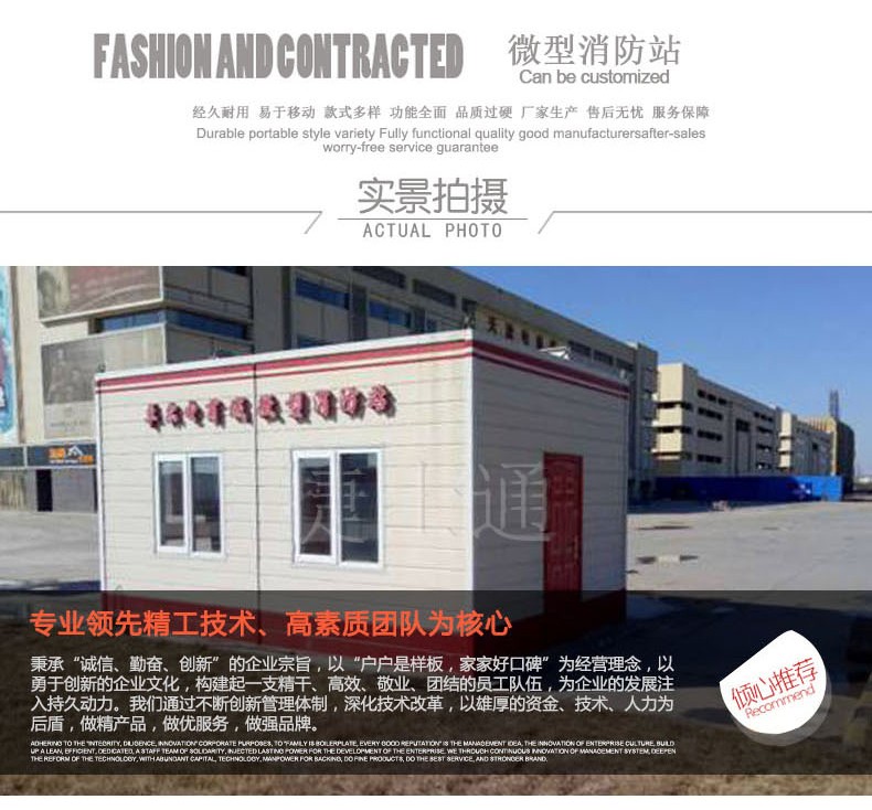 | 類型 | 微型消防站 | 顏色 | 可定做 | 運輸方式 | 公路運輸 | ||