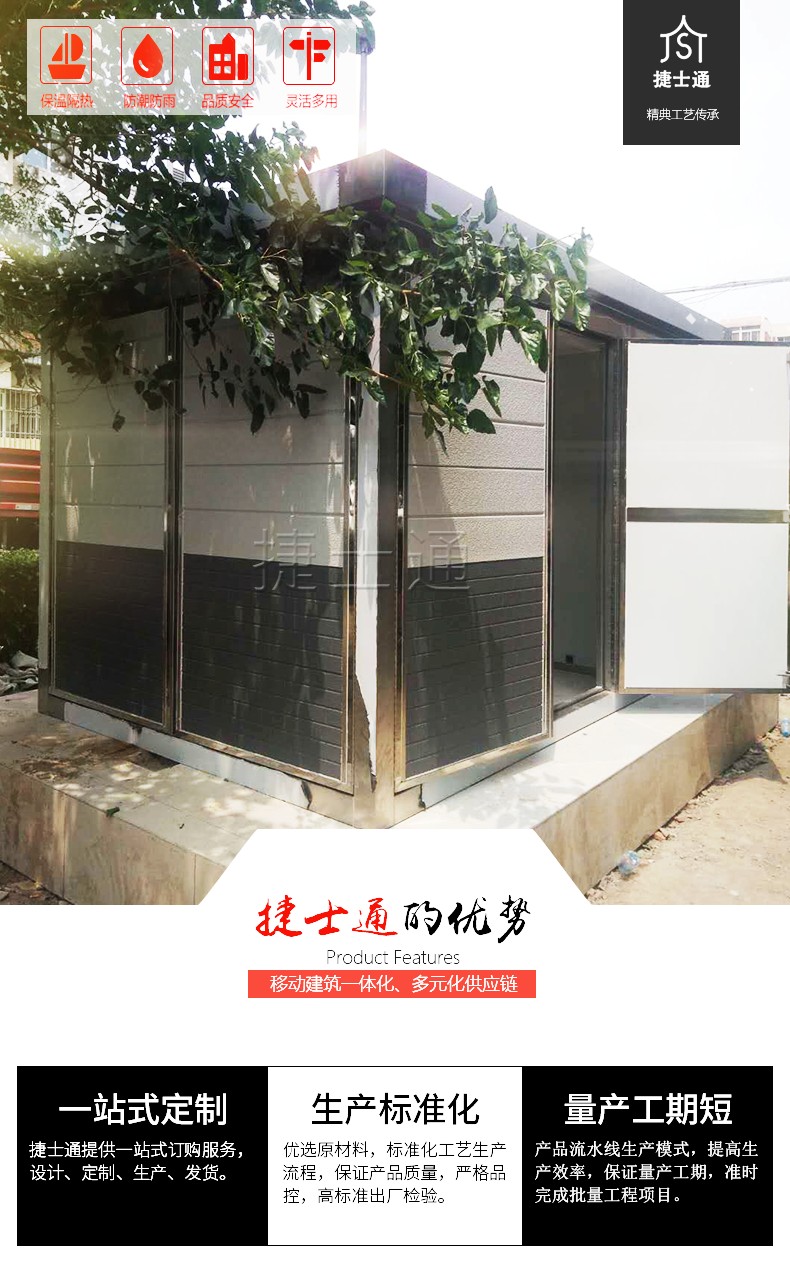 天津市捷士通科技有限公司坐落于美麗的天津市北辰區(qū)萬發(fā)科技園。占地面積20000平方米,是一家經(jīng)驗豐富設(shè)計、研發(fā)、生產(chǎn)、銷售環(huán)保移動房屋結(jié)合智能化一體的經(jīng)驗豐富生產(chǎn)供應(yīng)商。聯(lián)系電話:15822882616。