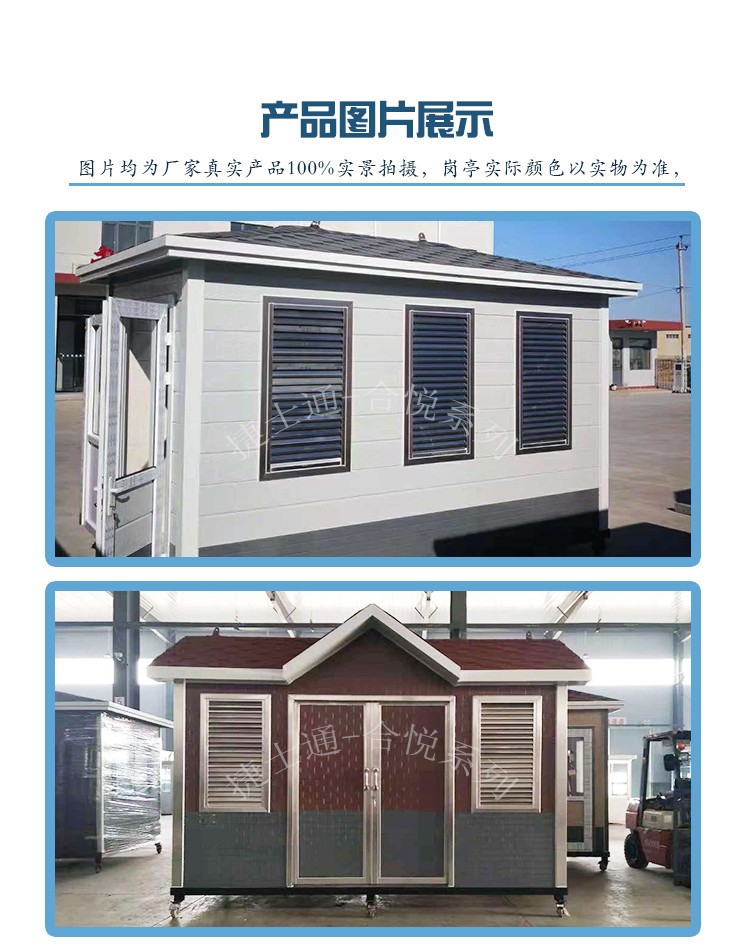 生產(chǎn)線包含:設(shè)備房、收費(fèi)崗?fù)?、高端崗?fù)?、警?wù)崗?fù)ぁ⑹圬浲?、移動廁所、智能吸煙亭、智能安檢亭、大型移動辦公室、大型設(shè)備房等。