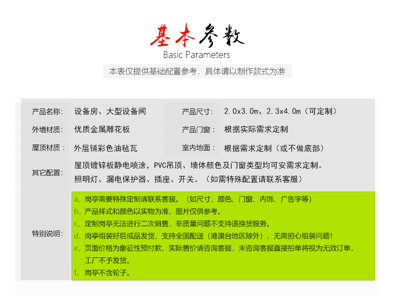 | 類型 | 設(shè)備房 | 顏色 | 可定做 | 運(yùn)輸方式 | 公路運(yùn)輸 | ||