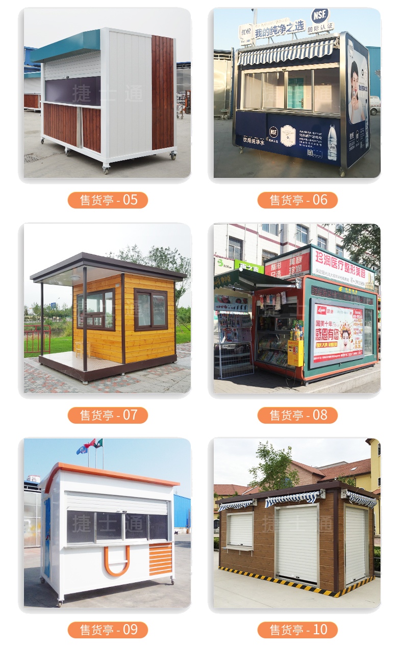 有適合景區(qū),旅游地方使用的木質(zhì)仿古售貨亭,體現(xiàn)景區(qū)特色,服務(wù)景區(qū)經(jīng)濟(jì);有適合廣場(chǎng)和商業(yè)使用的現(xiàn)代型售貨亭,美觀時(shí)尚!