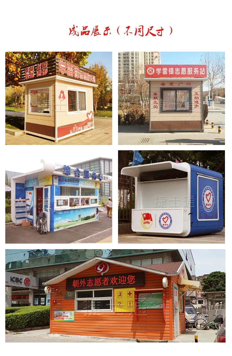 天津捷士通便民志愿服務(wù)亭系列,便民志愿服務(wù)亭能方便市民,進(jìn)行交通指路咨詢,城市治安維護(hù),街頭售貨及書報(bào)等;便民服務(wù)亭的啟用保證市民及外來游客能得到zui大的方便及城市貼心的服務(wù);配置有工作臺(tái)、柜子,顯示屏,網(wǎng)絡(luò),監(jiān)控,空調(diào)等;可為市民提供設(shè)施有雨傘,醫(yī)藥箱,嬰兒車,打氣筒,代繳水電費(fèi)及代收快件,飲水機(jī)等。;便民服務(wù)亭是一個(gè)城市對(duì)外的窗口,也是一個(gè)城市的名片。常規(guī)案例尺寸:長3.0米,寬2.5米,高2.9米,其他尺寸都是可以定制的。聯(lián)系電話:15822882616,公司網(wǎng)址:mapreels.com。