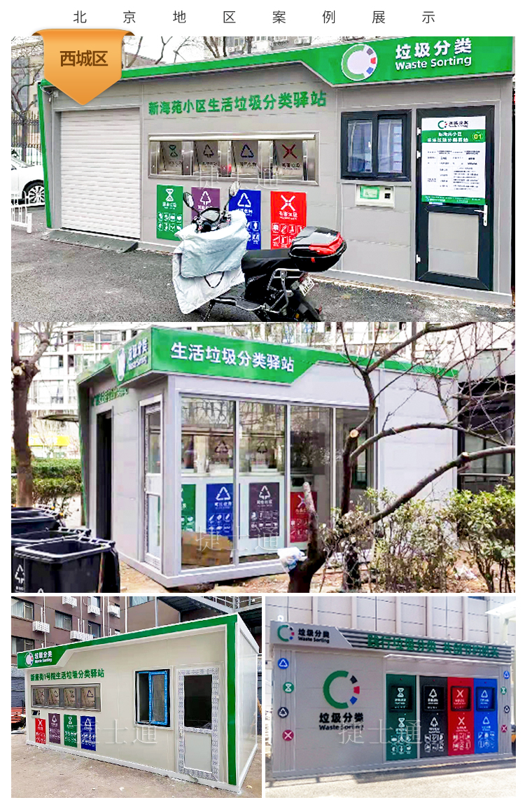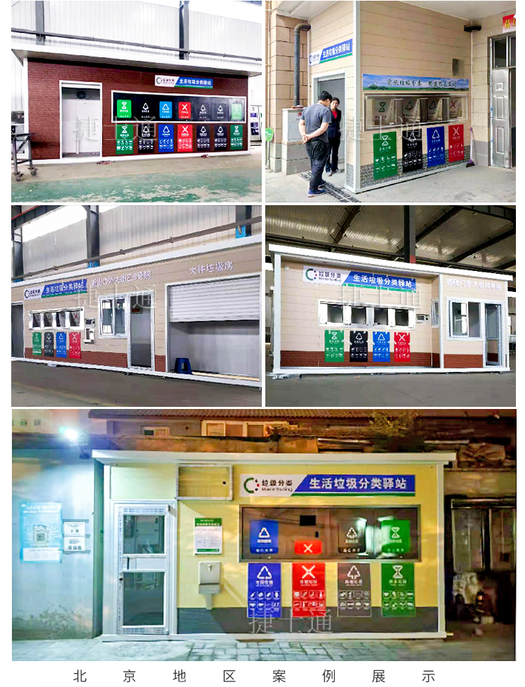 北京垃圾分類驛站的尺寸大小各不相同,有大尺寸現(xiàn)場裝配的(現(xiàn)場無污染,快速裝配交付)