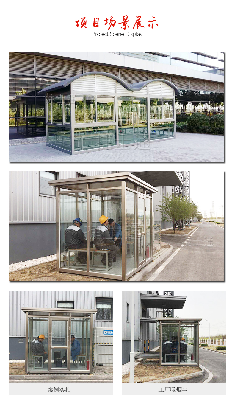 標(biāo)準(zhǔn)配置:屋頂鍍鋅板靜電噴涂,PVC吊頂,墻體玻璃材質(zhì)(鋼化、中空、有色玻璃等可定做),照明燈,漏電保護(hù)器,插座組,開關(guān),長凳,煙灰缸(如需空調(diào),排風(fēng)扇請(qǐng)聯(lián)系客服。咨詢電話:15822882616,公司網(wǎng)址:www.mapreels.com