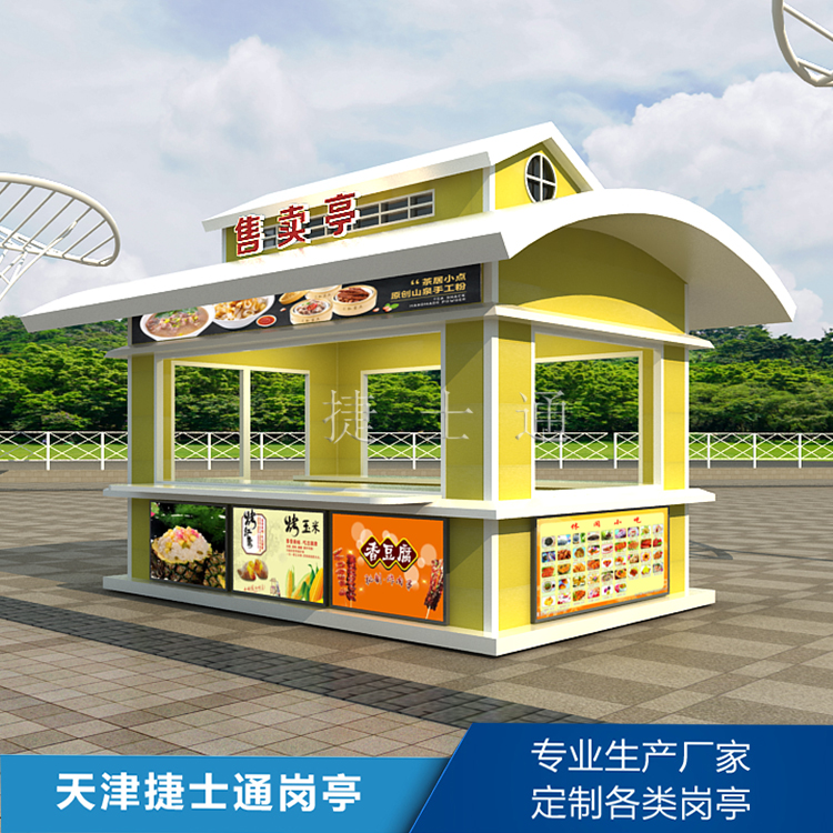小巧玲瓏: 售貨亭不需要太大,而且較 好是小巧玲瓏的設計,以適應整個游樂場的比例和主題。設計簡單、實用的售貨亭,使得游客可以方便快捷地購買小食品、水、飲料等小吃。